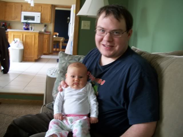 here’s a horrible picture of me and the new niece Jaden from last weekend…I’ve since cut my hair way short, but you can imagine in this picture what I will look when completely bald.