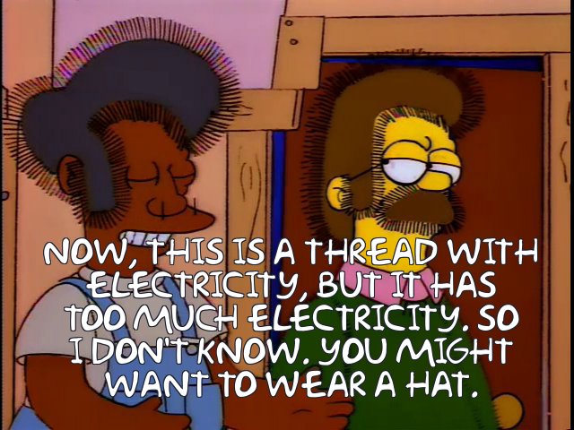 I thought of this earlier today, and it made me laugh. (I just thought of Milhouse wondering about a fishbowl. I actually couldn’t remember the episode or the context. That whole Laddie episode is great.)
