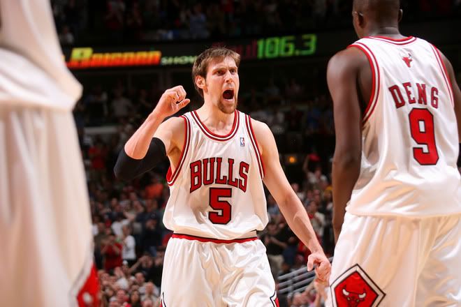 Look, I love Ben Wallace as much as anyone. But I’ll be the first to admit that he has a LOT of trouble against Shaq. Even in '04 and '05 when they beat him, Elden Campbell was far more effective off the bench in stopping Shaq and even in '05 we probably only won that series because Stan Van Gundy was a moron and wouldn’t feed Shaq the ball enough… Ben just doesn’t have the bulk or the height to handle him. What’s even funnier is how Tyson Chandler did GREAT on Shaq in that series last year and, of course, the Bulls got rid of him and he was lighting it up for the Hornets on defense this year. Now the Bulls have absolutely NO ONE in the low post offensively (way to save up all that cap room and then use it for no one at the trade deadline) so they have to resort to nothing but jump-shots to win. And we all saw in the East Finals last year what a team that shoots nothing but jumpers can do against the Pat Riley Heat. Not good.