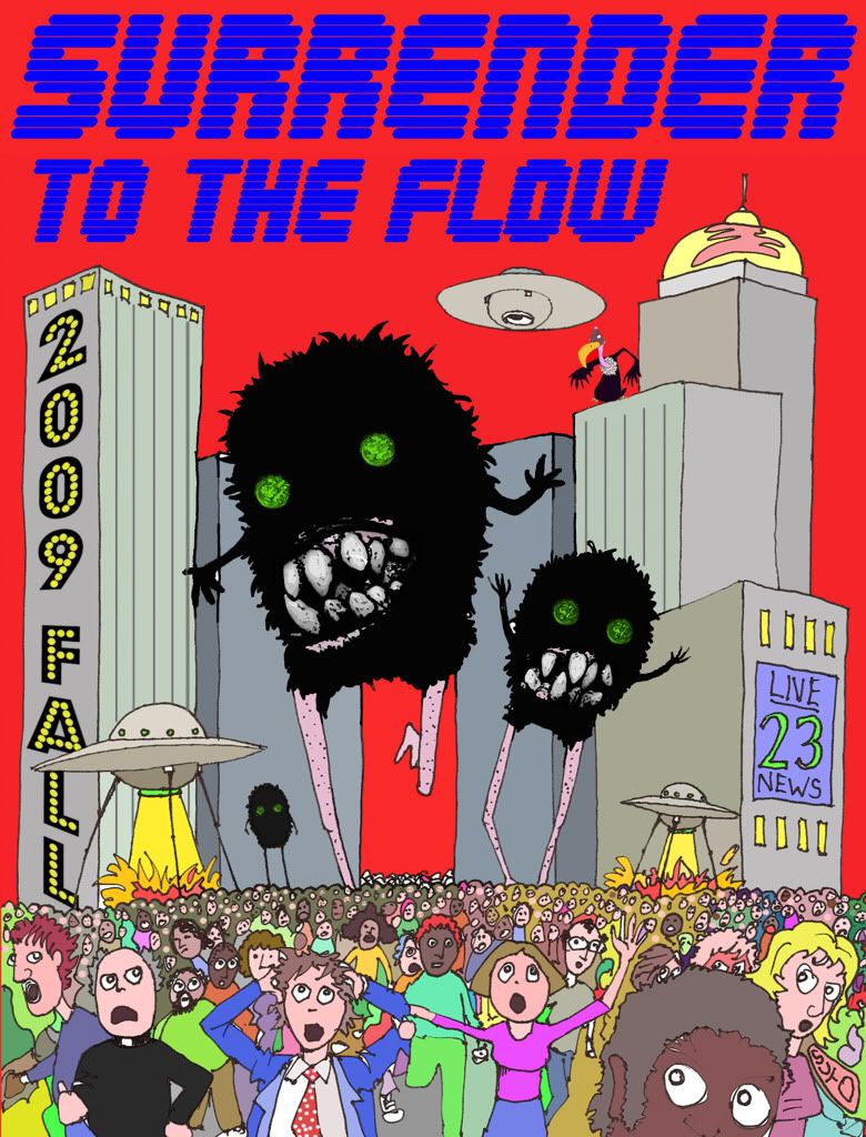 We hope that many of you are having a great time on fall tour, I know we are. And we hope that many of you are familiar with the Surrender to the Flow magazine that we do fo revery tour, going on 10 years now. This fall tour issue we made a print of the cover that, from what we can tell, might have inspired the BBFCFM in Syracuse, for the band did recieve copies of the STTF before the show. We do have some prints left for anyone who would be interested in one. They are $10 each + $5 shipping. We did a run of 50 and they are signed and numbered by STTFs artist Drew Suto. If anyone is intereted please contact Drew at otuswerd@yahoo.com or on this thread…See you all at MSG…
